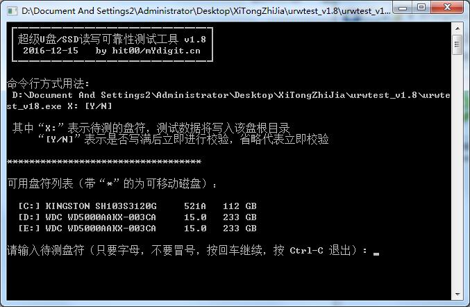 待测盘符只能是字母,不要冒号,按Ctrl-C随时中止退出。