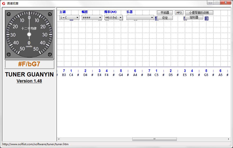 调律观音是一款专业的乐器调音、定音的软件,该软件界面简洁、无需安装即可使用,你可以通过该软件,对乐器进行调音,支持绝大多数乐器调音操作,并且音调精准,误差可以忽略不计,有了调律观音,让你轻松对乐器调音,是热爱乐器的用户必备调音软件。