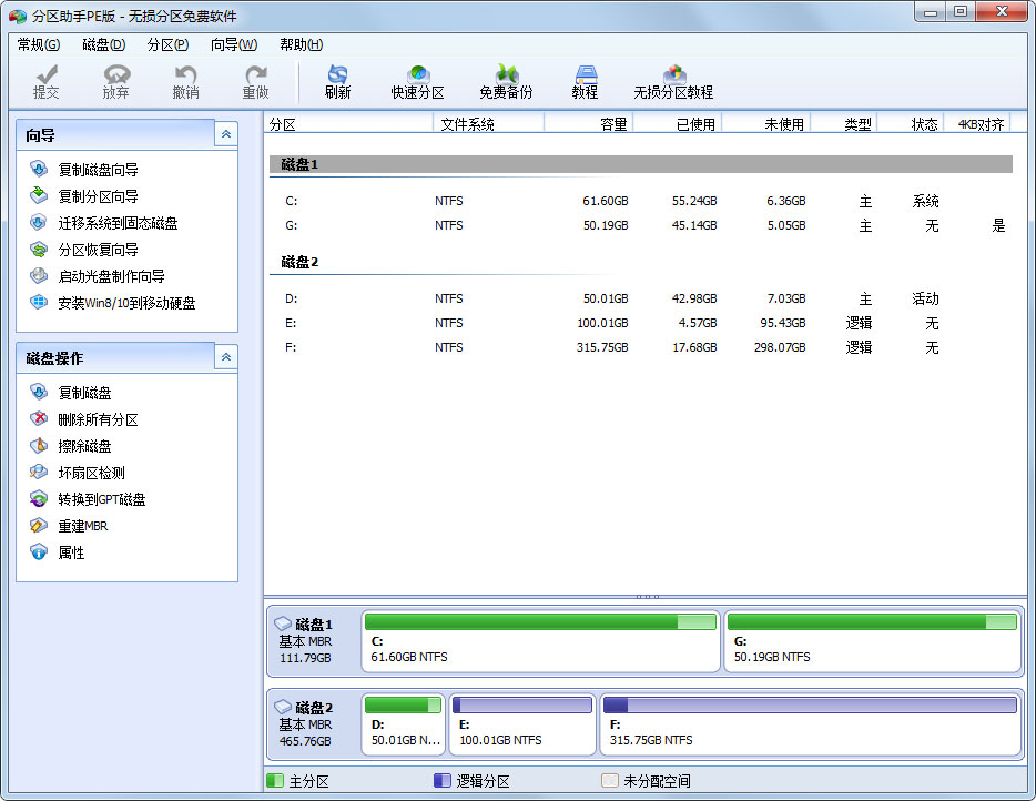 分区助手是一个简单易用且免费的磁盘分区管理软件,在它的帮助下,你可以无损数据地执行调整分区大小,移动分区位置,复制分区,复制磁盘等操作,是一个不可多得分区工具。它作为分区魔术师(Partition Magic)的替代者,它不仅支持Windows XP/2000/2003/WinPE,还支持最新的Windows 7/Vista和Windows 2008。不管是普通的用户还是高级的服务器用户,分区助手都能为他们提供全功能、稳定可靠的磁盘分区管理服务。