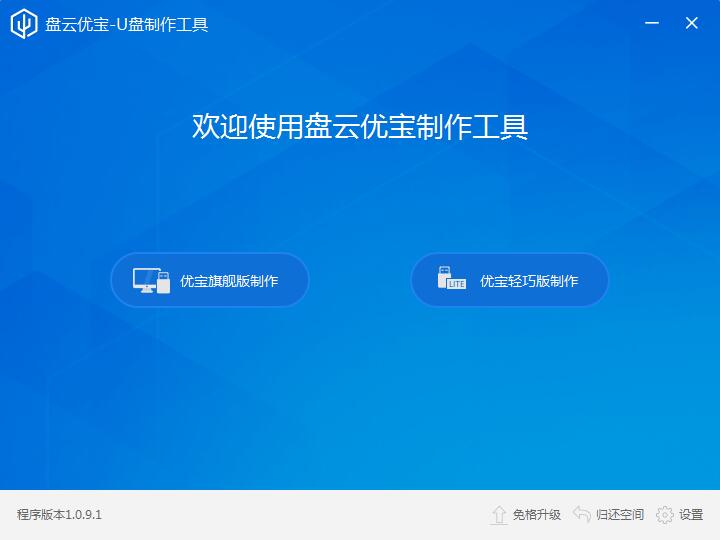 盘云优宝是一款系统预安装环境(PE)启动工具,它操作简单,傻瓜式在线联网制作,使用起来十分人性化,以U盘作为使用载体,整合了盘云装机助手及其他系统工具,有效提高系统安装效率。