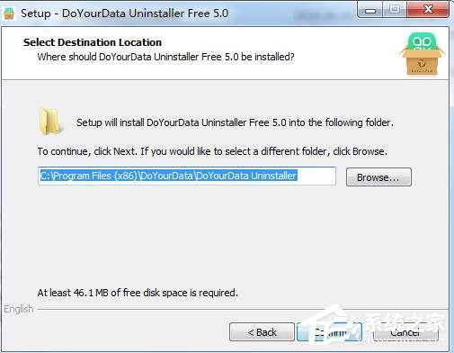 3、选择安装目的地,默认的是C:Program Files (x86)DoYourDataDoYourData Uninstaller,可以点browse修改;