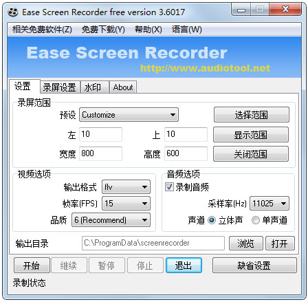 Ease Screen Recorder是一个易于使用的屏幕录制软件,Ease Screen Recorder能够记录你电脑上所有屏幕活动的动作和声音,并将其保存到mp4、flv、swf和wmv视频文件中。