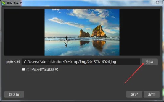 第三步、点击浏览按钮,从电脑中选择图片,选择好图片后,点击确定后即完成插入图片操作,所选图片将显示到场景中。
