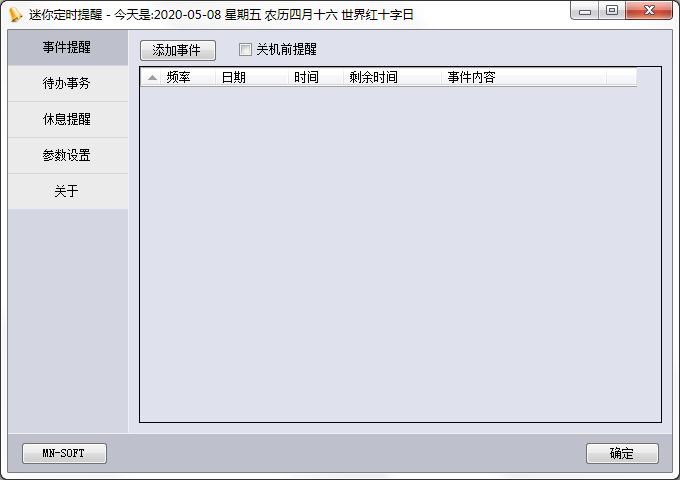 迷你定时提醒工具是一款实用性性非常强的定时关机软件工具,内置了包括事件提醒,定时提醒,待办事务,护眼配色,定时关机等功能,用户操作起来也非常简单,比较适合经常使用电脑的上班族使用,占用内存非常小,用户可以放心使用。