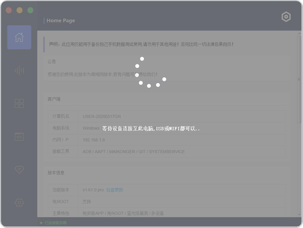 打开MK远程助手,会提示检测设备,检测完成后可以在手机列表中查看到您的手机。