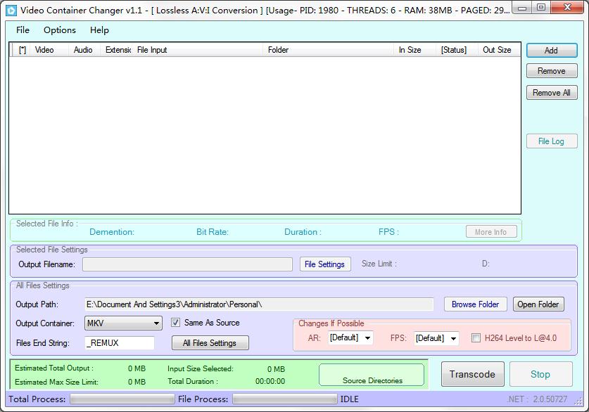 Video Container Changer(视频格式转换器) V1.1 英文绿色版