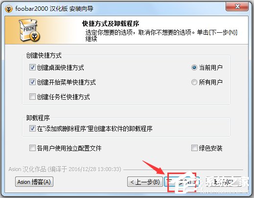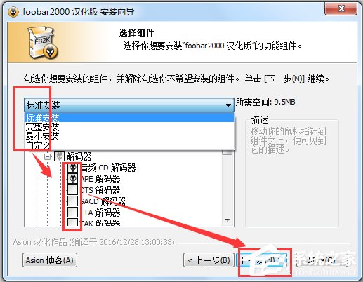 4、勾选需要安装的组件,Foobar2000插件多,可让用户随心所欲地选择,这是特色。