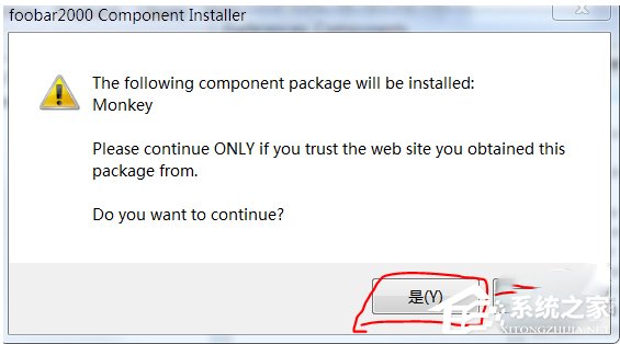 4、双击这个文件,会开启Foobar2000并弹出一个安全提示,要安装组件就必须选是。