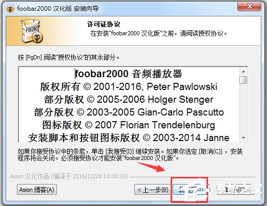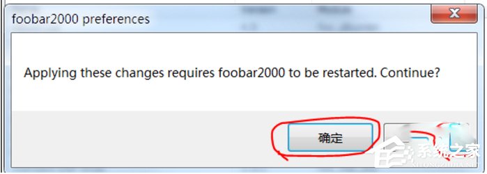 6、点完确定Foobar200自动重启,如果你开启了Windows“用户账户控制”,还会受到一个提示,毫无疑问这里肯定要点“是”。