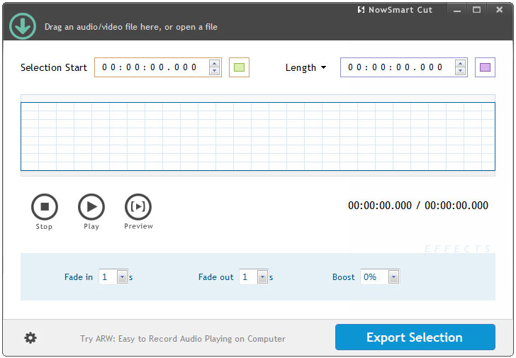 1、打开音频或视频文件,或将文件拖放到NowSmart剪切窗口;