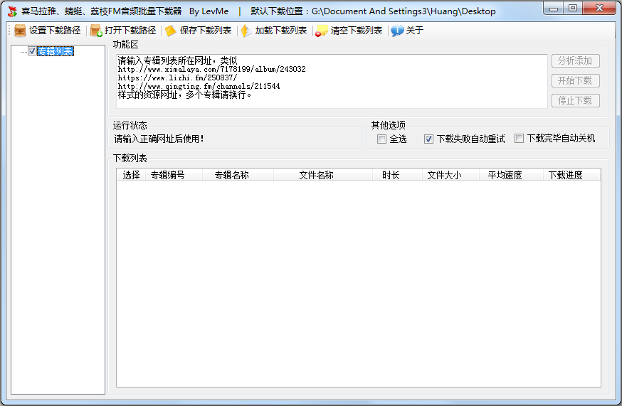 喜马拉雅蜻蜓荔枝FM音频批量下载器 V1.0 绿色版