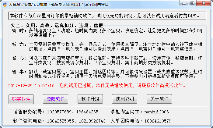1、省时:多线程复制宝贝功能,短时间内复制多个宝贝,快速稳定,让您把更多的时间放在如何发展店铺上。
