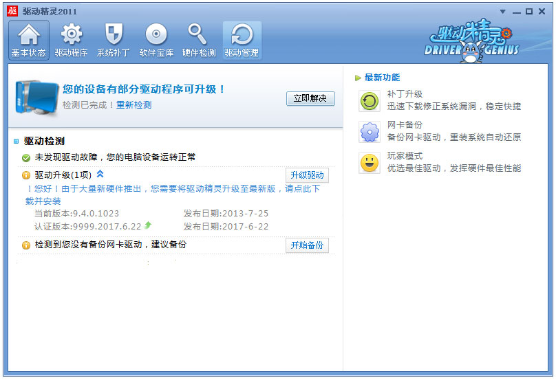 驱动精灵2011是驱动精灵历代版本中的经典版本,专业提供驱动安装,系统补丁升级管理以及软件官方,让你装机后不用愁,从驱动到装机软件一条龙搞定,系统有重装的用户可一定要下载过来使用。