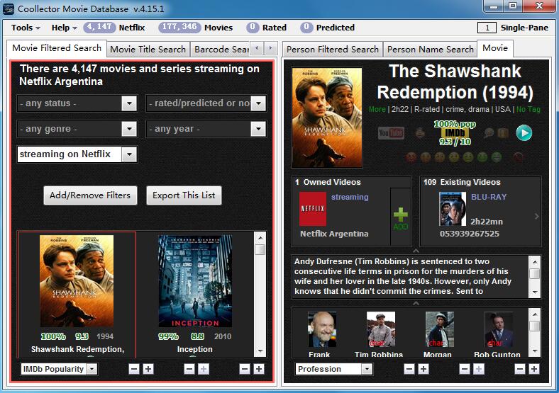 2.你可以个性化所有数据。你可以改变所有你所了解(从‘卓越的’到‘糟糕的’)的电影和人物。你可以谈论在你所拥有的收藏当中包含电影的技术细节。你可以保持对借出电影的跟踪。你可以管理你的希望列表。