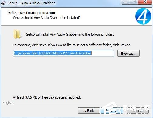 3、安装的地址是C:Program Files (x86)Soft4BoostAnyAudioGrabber,点击next就是默认安装地址;