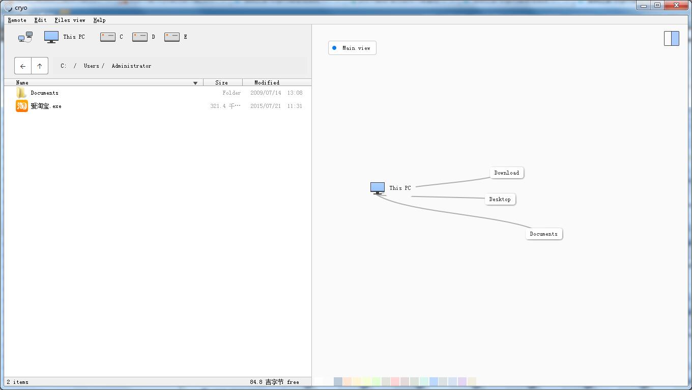 cryo是一款非常不错的可视化文件管理器,眨眼间导航嵌套的文件夹结构,双窗格模式与标签和指挥官风格的键盘快捷键,私下传输文件--点对点,端对端加密,对文件大小没有限制,快速直接传输文件,无需登录,无需注册,无需云端。