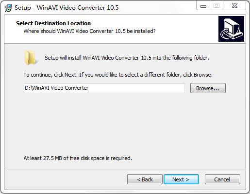 4、选择软件安装的位置,默认位置“C:Program Files (x86)WinAVIVideo Converter”,建议安装在D盘,点击“next”。