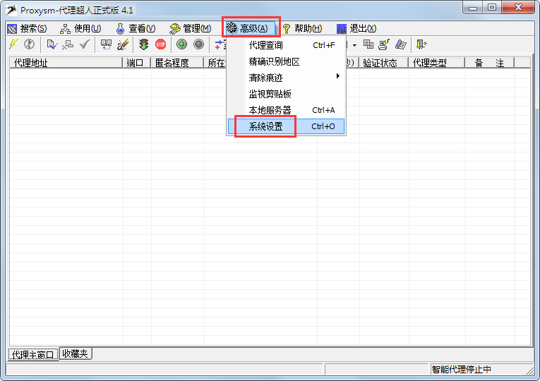 1、下载安装代理超人软件,让我们先来小小的设置一下,依次点击 高级--系统设置 选项;