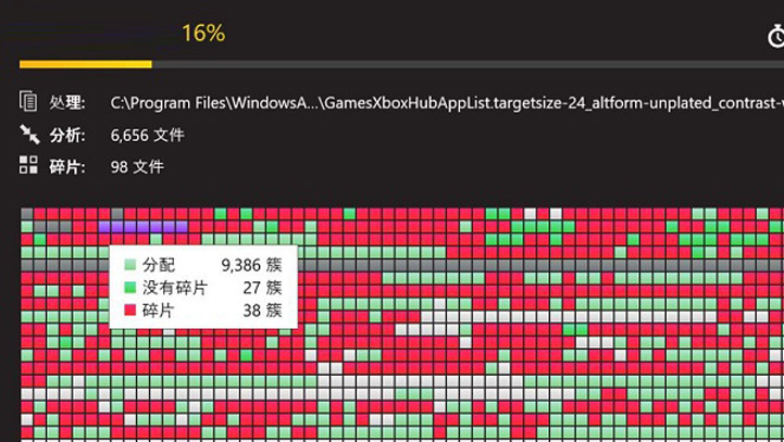 3、显示分析进度,软件可以立即查找碎片,可以将无用的碎片显示。