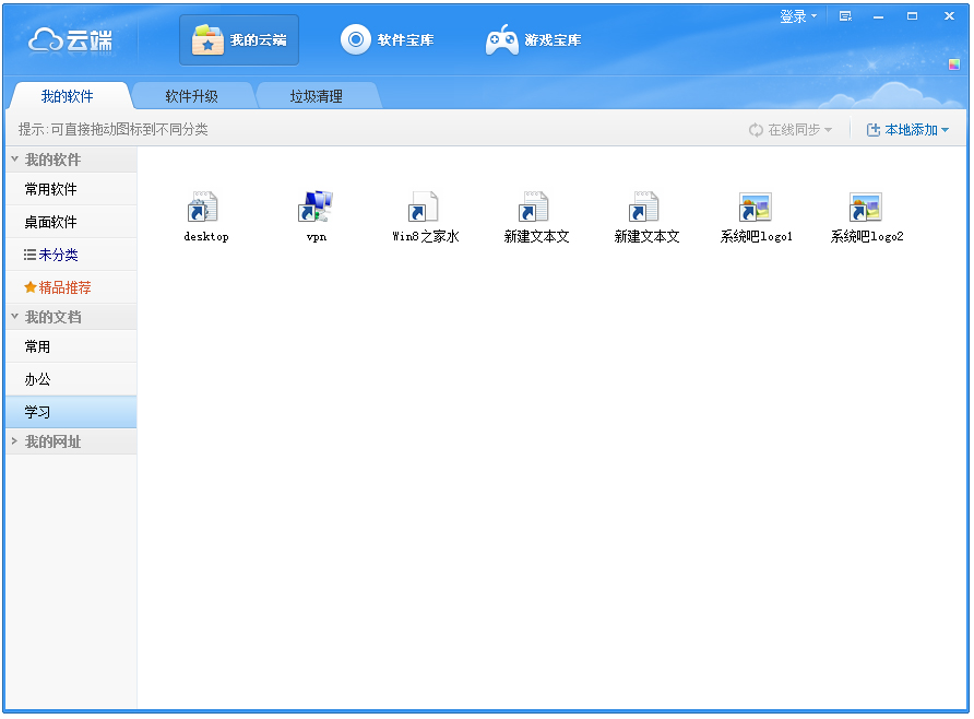 本地软件列表一键备份到网络服务器,配合云端资源平台,随时随地使用你熟悉、中意的软件。