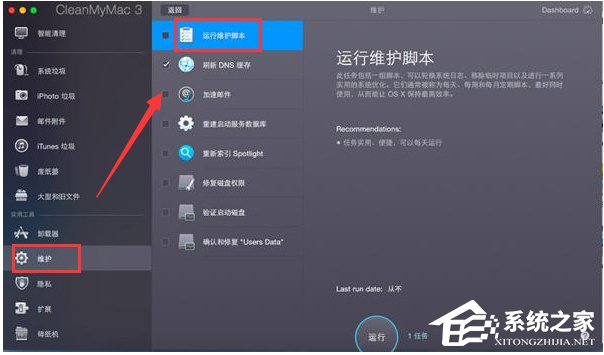 维护功能可以运行一组脚本,提高磁盘性能,解决各种应用程序错误,提高搜索性能。点击“选择任务”,勾选需要维护的内容,点击“运行”即可。