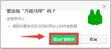 2.电脑自动打开网页,显示是否添加万能马甲为插件,点击添加