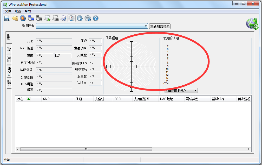破解WEP密码前一般用来“踩点”,也可用于发烧友测试无线网卡的天线,比如新买的定向天线,为了获得最好的信号,可用此软件一边检测信号强度一边旋转天线方向。