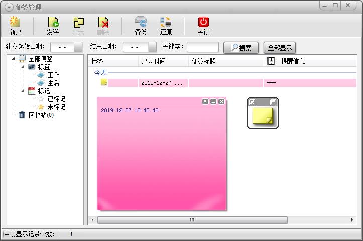 您可以为每个便签指定一个提醒时间,到时后窗口会以闪动和声音的方式提醒您。