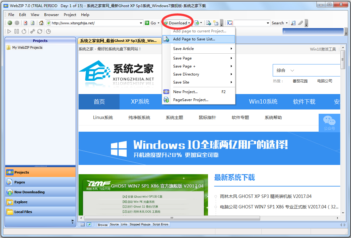 3、WebZIP支持多链接下载