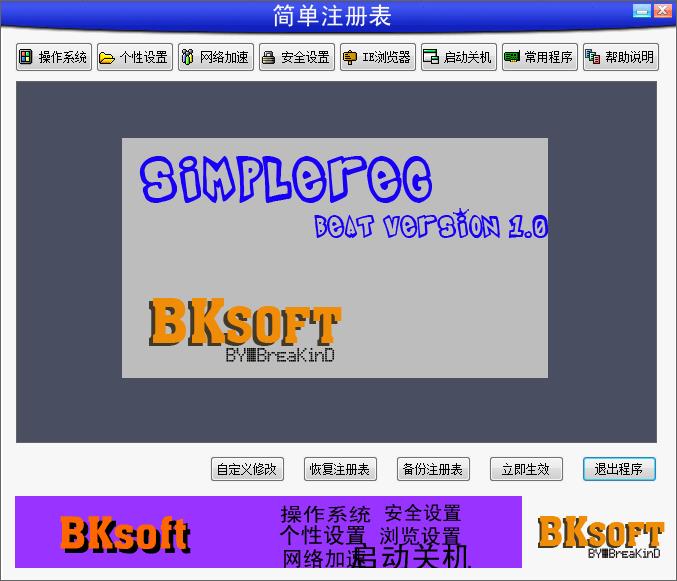简单注册表是一款注册表优化软件,网上注册表优化文章较多,大多数网友想要优化自己电脑的同时发现相当的麻烦,或者对注册表不熟悉,不知如何下手,本软件以此为出发点,收集了几乎所有的流行优化设置,使用本软件,你仅仅需要点几下鼠标,软件便自动完成了优化,从此摆脱优化电脑的麻烦。