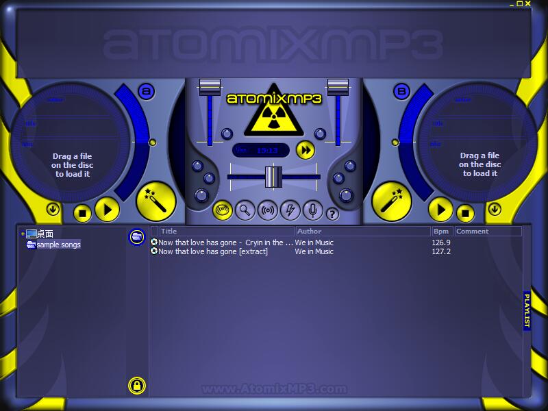 Atomixmp3是一款非常不错的混音工具。简单的来说就是把两首歌混在一起,一首歌能出现两种不同的节奏效果。软件还支持,两首歌播放速度调整,可以调出你喜欢的节拍,制作出个性化的歌曲。