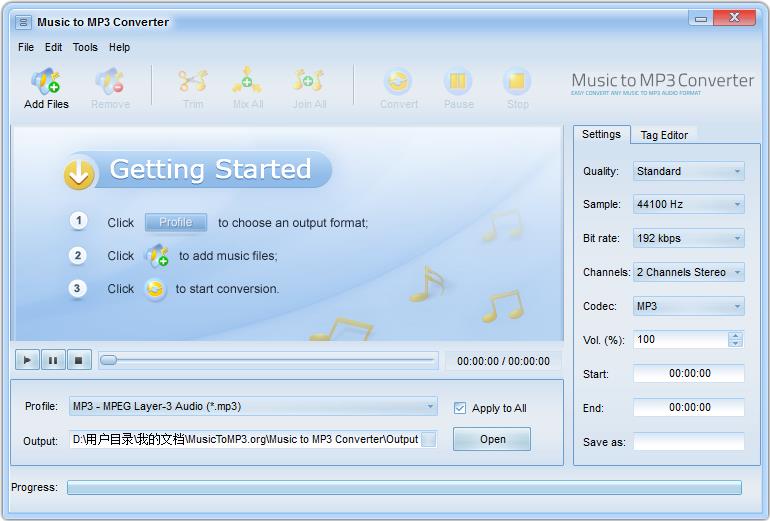 Music to MP3 Converte(音乐格式转换工具) V1.0 英文安装版