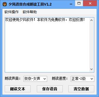 夕风语音合成朗读工具,软件为易语言编写,主要功能是朗读文本与合成语音,字数不限,支持男声女声以及变速!