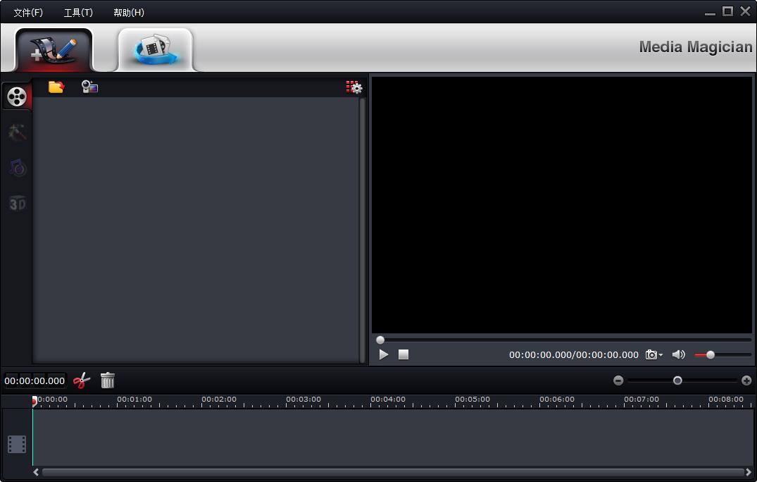 通过突出显示剪辑时间线,转到3D效果选项卡,可以启用和选择输出视频的3D效果。