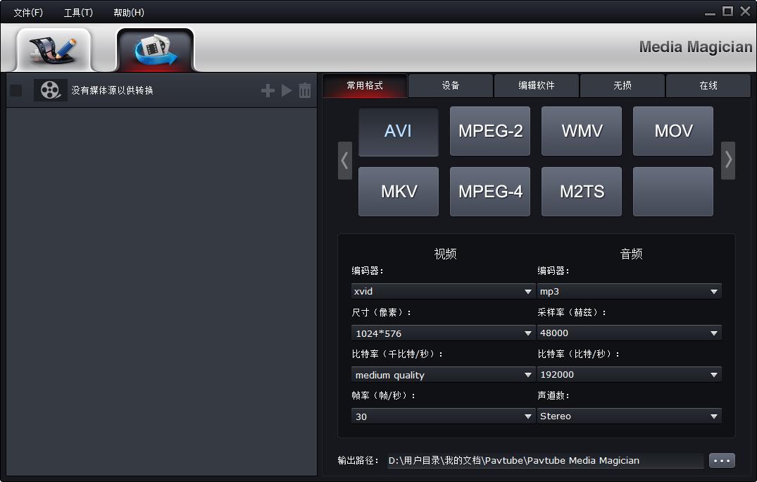 转换和输出常见视频,如MPEG-2/4、AVI/WMV/MOV/MKV/M2TS。