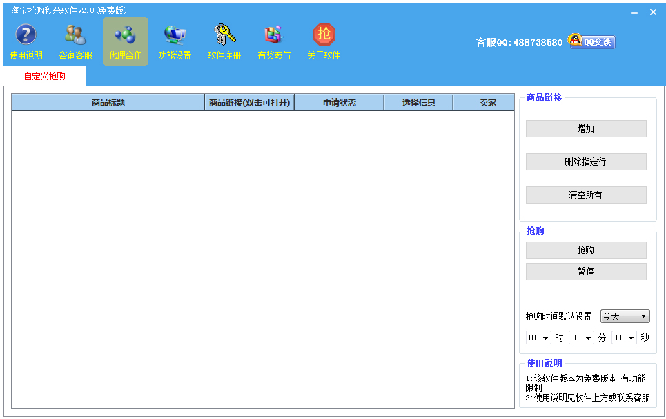 软件设置简单,一键抢购