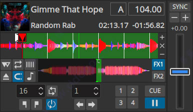 将一首歌曲放到Mixxx中的一个卡座上,立即开始播放。保持您的眼睛在节拍和提示点上带有可刮擦的滚动波形,以及用于快速搜索的整首歌曲概览波形。