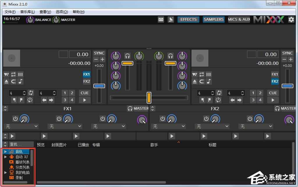 Mixxx是一款功能非常强大的专业DJ混音软件,它支持Windows上的ASIO和DirectSound,Linux上OSS、ALSA,Mac OS X的CoreAudio,还可以读取最流行的音频格式,包括MP3、Ogg Vorbis、Wave、Aiff和FLAC。