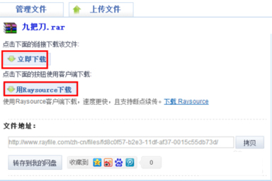 2.打开rayfile的下载页面,然后点击用Raysource下载。