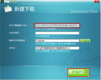 5.点击Raysource主界面上的新建任务,然后粘贴下载链接,并点击开始下载。