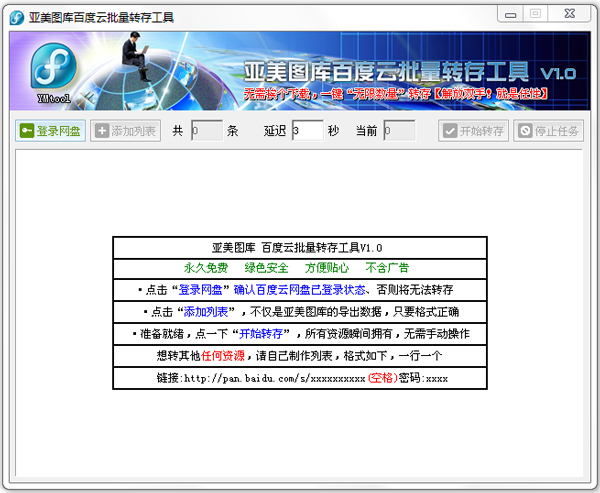 亚美图库百度云批量转存工具 V1.0 绿色版