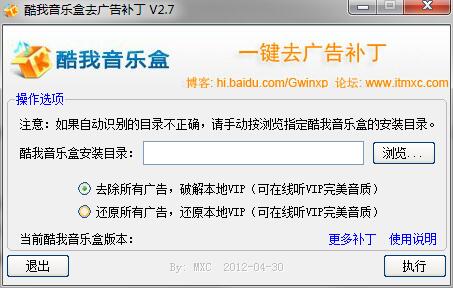 酷我音乐盒去广告补丁 V2.7 绿色免费版