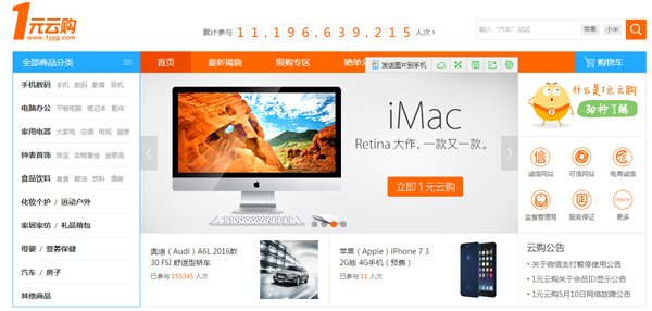 随着互联网的发展及网购消费模式的多样化,1元云购势必成为中国电子商网站中最具活力的生力军及网民最爱的购物网,必将迅速崛起,成为互联网新时代的佼佼者!