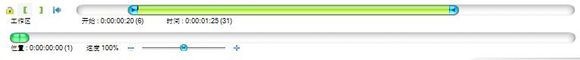 3、设置工作区:点击“【”可将滑块当前位置设置为第一帧,点击“】”可将滑块当前位置设置为最后一帧(该功能可用于视频剪切。点击保存时,所保存的视频为工作区内的视频片段);