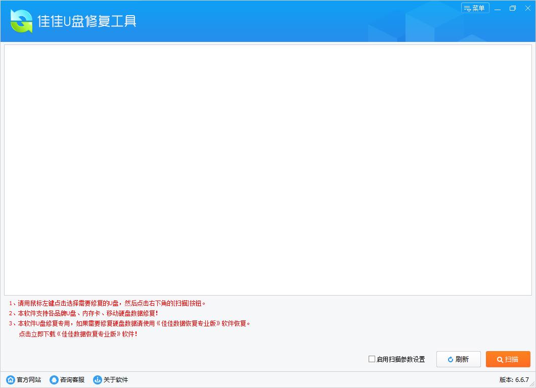 佳佳U盘修复工具是一款专门修复U盘的工具,该U盘修复工具能有效解决病毒入侵、文件丢失等问题,因此有需要的朋友赶紧下载吧!