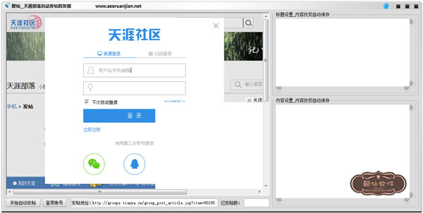 巅仙天涯部落自动发帖群发器 V1.0 绿色版