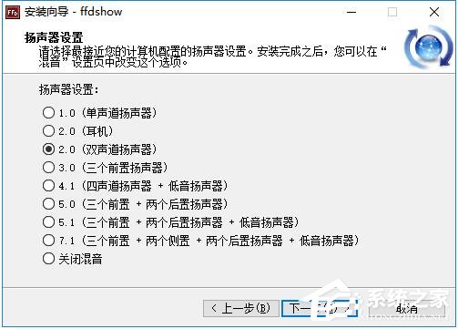 4、默认选择双声道扬声器设置;