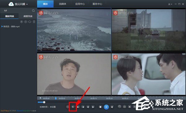 1、如果用户想要在视云闪播中进行双频、甚至是多个视频的播放,都是可以的,小编事先打开了一个视频文件,接着只需要在右下角中找到“切换”选项即可设置屏幕数量,用户可以在1、4、9和16中选择,下面演示的是4个;
