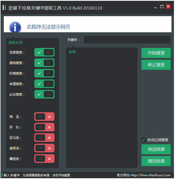 歪碰下拉框关键字提取工具 V1.0 绿色版