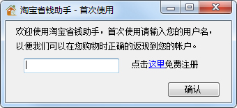 第一次安装时,点击“淘宝省钱助手.exe”在弹出的界面输入本站注册帐号,点击确定按钮,安装完成,必须重新打开浏览器,在页面上点击右键就能够看到 “ 淘宝省钱助手(最高返利50%)” 的选项了。